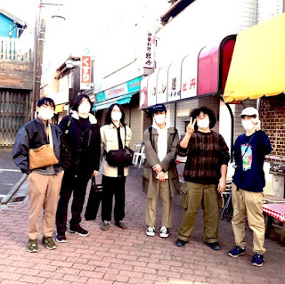 三崎に着いたらゆうらん船のみんながご飯屋さんで食事を終えたところに遭遇しました。