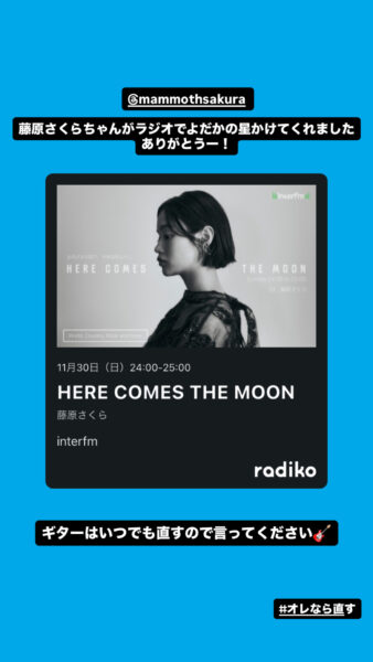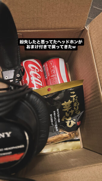 「なんでさくらちゃんが?」って思ってる人いるかもなので一応補足すると、僕は数年前に彼女のライブハウスツアーにギターで参加した事があるんです。ヘッドホンと一緒にコーラと芋けんぴ送ってきたのはその時のドラマーのようじろうです。