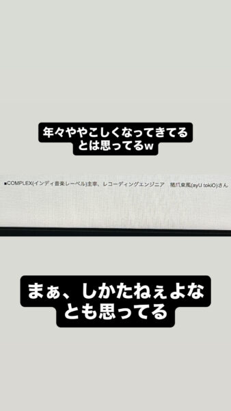 まあ、彼は音楽外でも結構親しくなるとよく話をしてくれるタイプではあると思っているけど。そもそも、その丁寧なコミュニケーションの姿勢がなんか音楽的で良いな と言いますか。