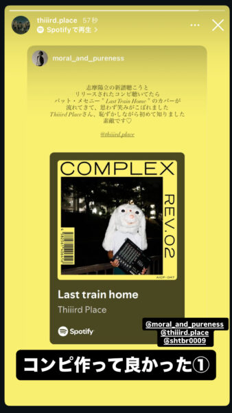 mjリハの時、ばたばた会場の準備をするmjさんに対しベース遠山さんが「音響さんもいいけど、シンガーにならないと」と厳しい言葉を優しく言っていて、すげー良いなと思って泣きそうになった。