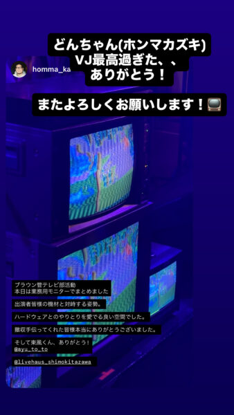出演者みなのチャレンジ精神、それぞれの音楽性、頼もしくコミュ力を発揮するVJ、楽しげなDJクルー、瑞々しさ、メカめかしさ、お客さんの雰囲気、ライブハウススタッフの姿勢。