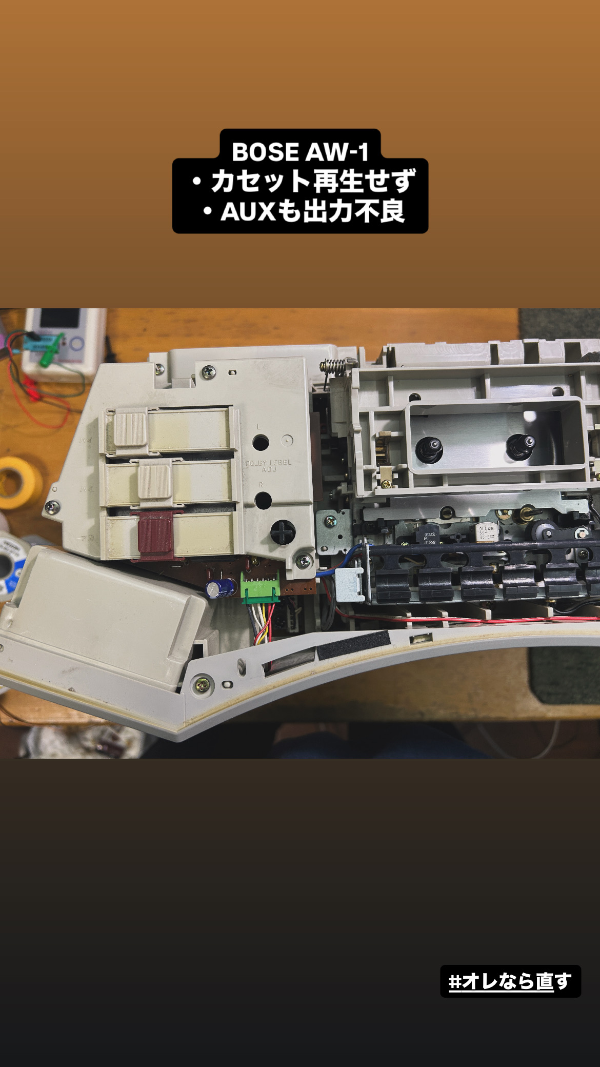 BOSEの名作ラジカセ AW-1 というのがありまして、正常に機能している状態であれば自分が知る中ではトップクラスに音の良いラジカセです。音がでかくめちゃ迫力がある。テープ再生時のノイズも少なくとてもクリア。ラジオの感度も良い。